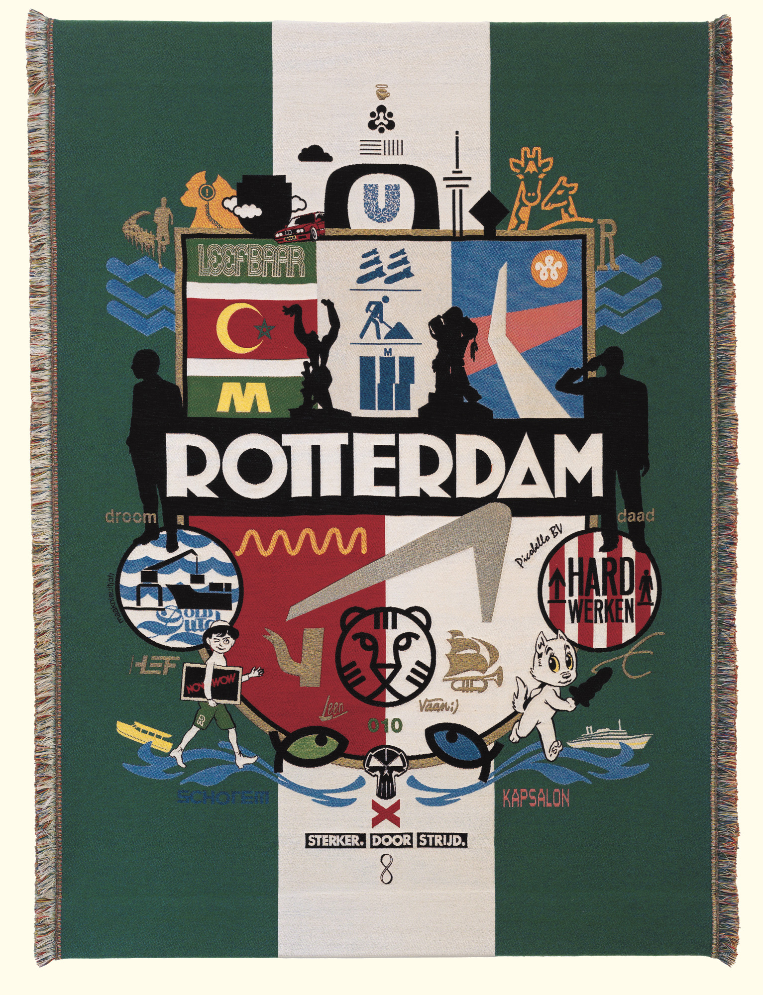Wandkleed met nieuw stadswapen van Rotterdam.
