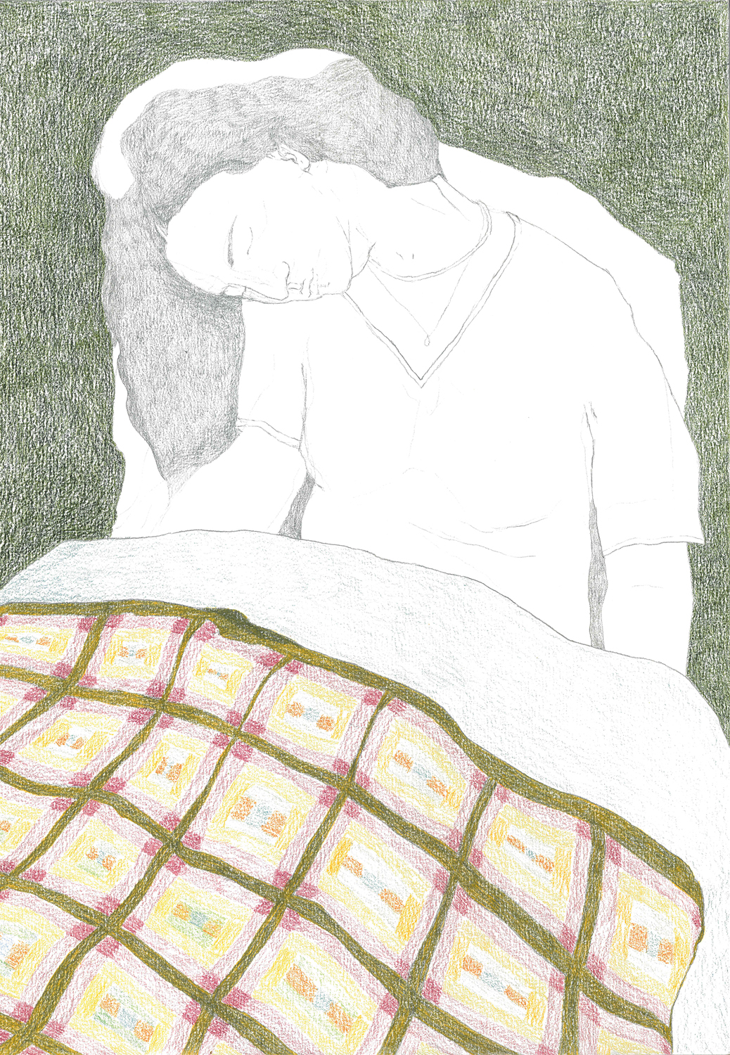 Het is stil in de binnentuin, zelfs de bovenburen hoor ik niet, en toch val ik niet in slaap. Ik lig al uren in bed en alleen voor een paar slokken rooibosthee lukt het me te gaan zitten. Mijn ogen prikken van de koorts. Wanneer ik me weer op mijn hoofdkussen laat vallen voel ik een scherp steken midden in mijn hart. Plotseling vult pijn mijn hele lichaam als onontkoombaar lawaai. Ik durf mijn geliefde niet te halen. Ik wil ook niet roepen, want onze eenjarige, die al wakker wordt van de vlotter in de badkamer, slaapt. Ik app hem dat ik steken in mijn hart voel.