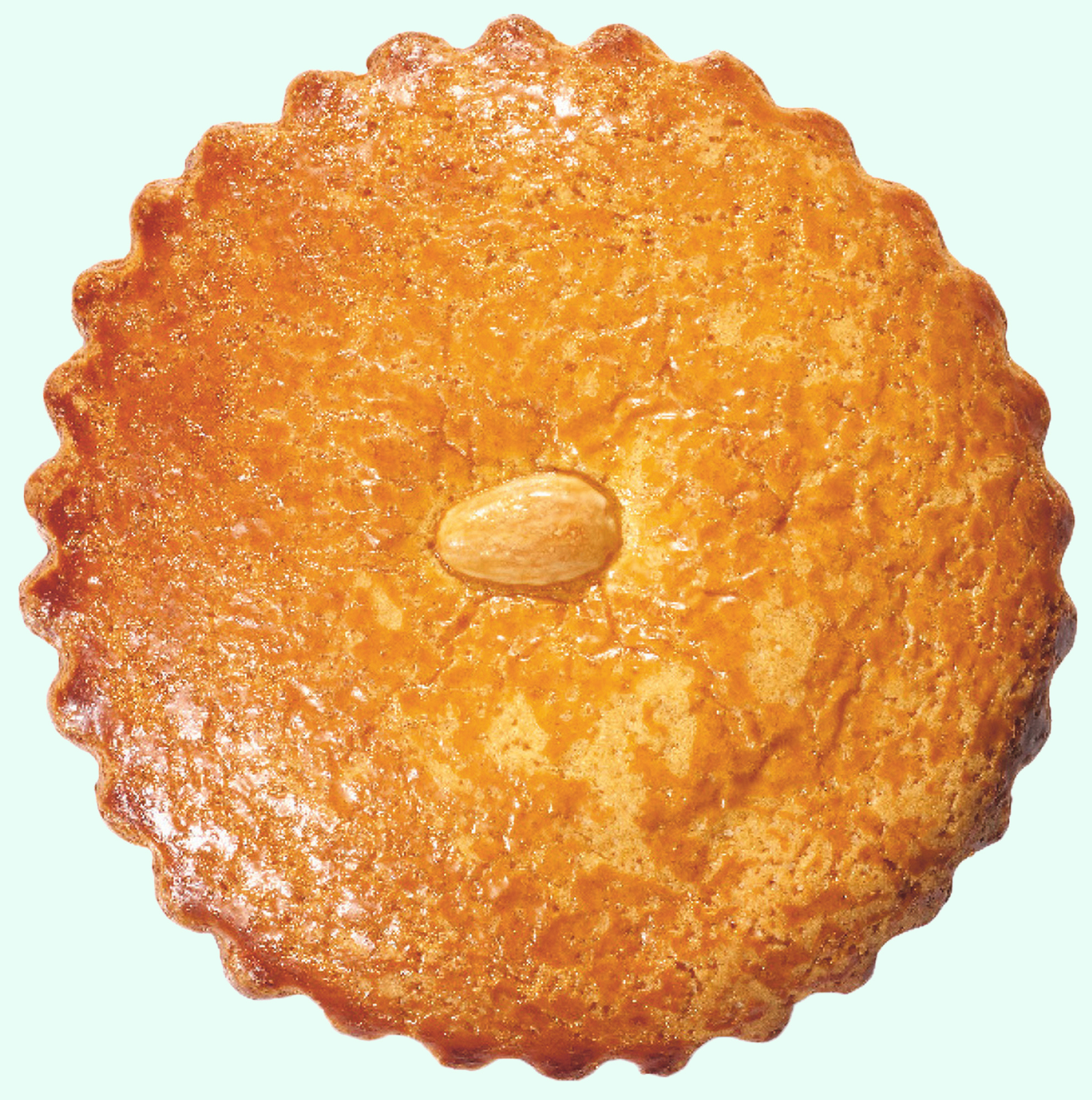 ‘Hier.’ Hij vouwt een koek in een papieren handdoekje en stopt die in de zak van haar werkschort. ‘Voor straks.’